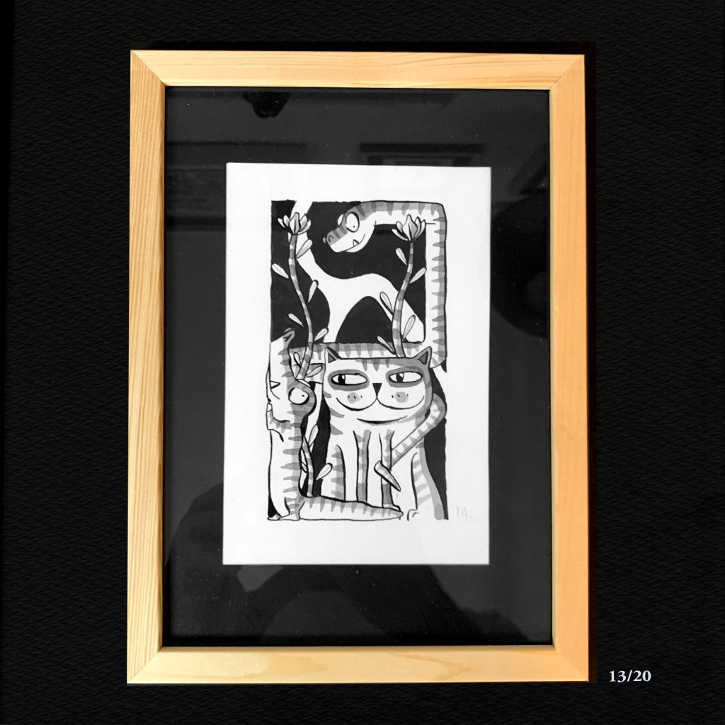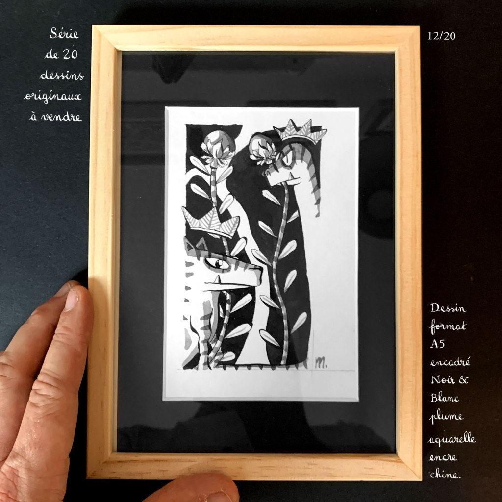 Tous les dessins sont faits à la plume, à l’encre de chine et à l’aquarelle.